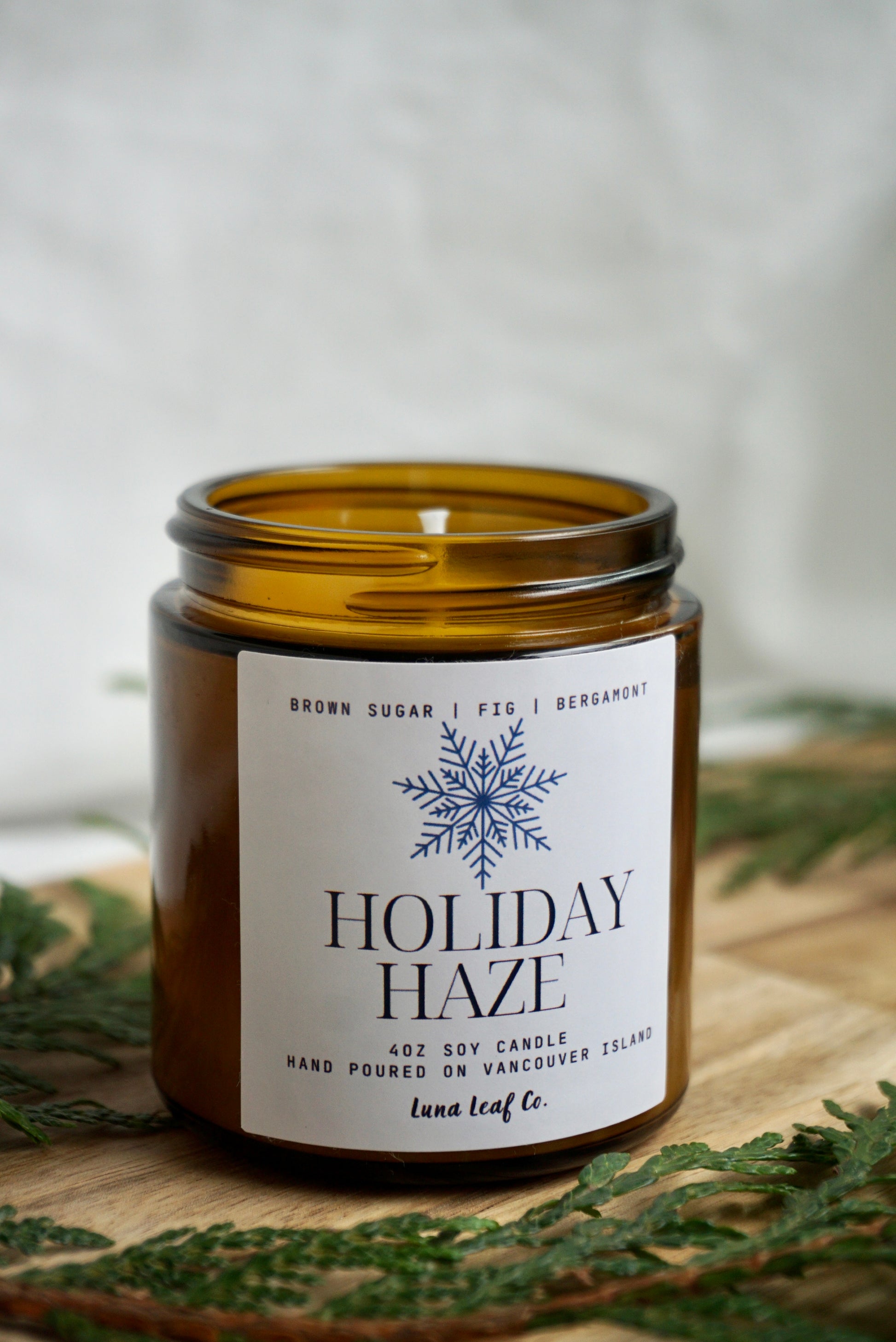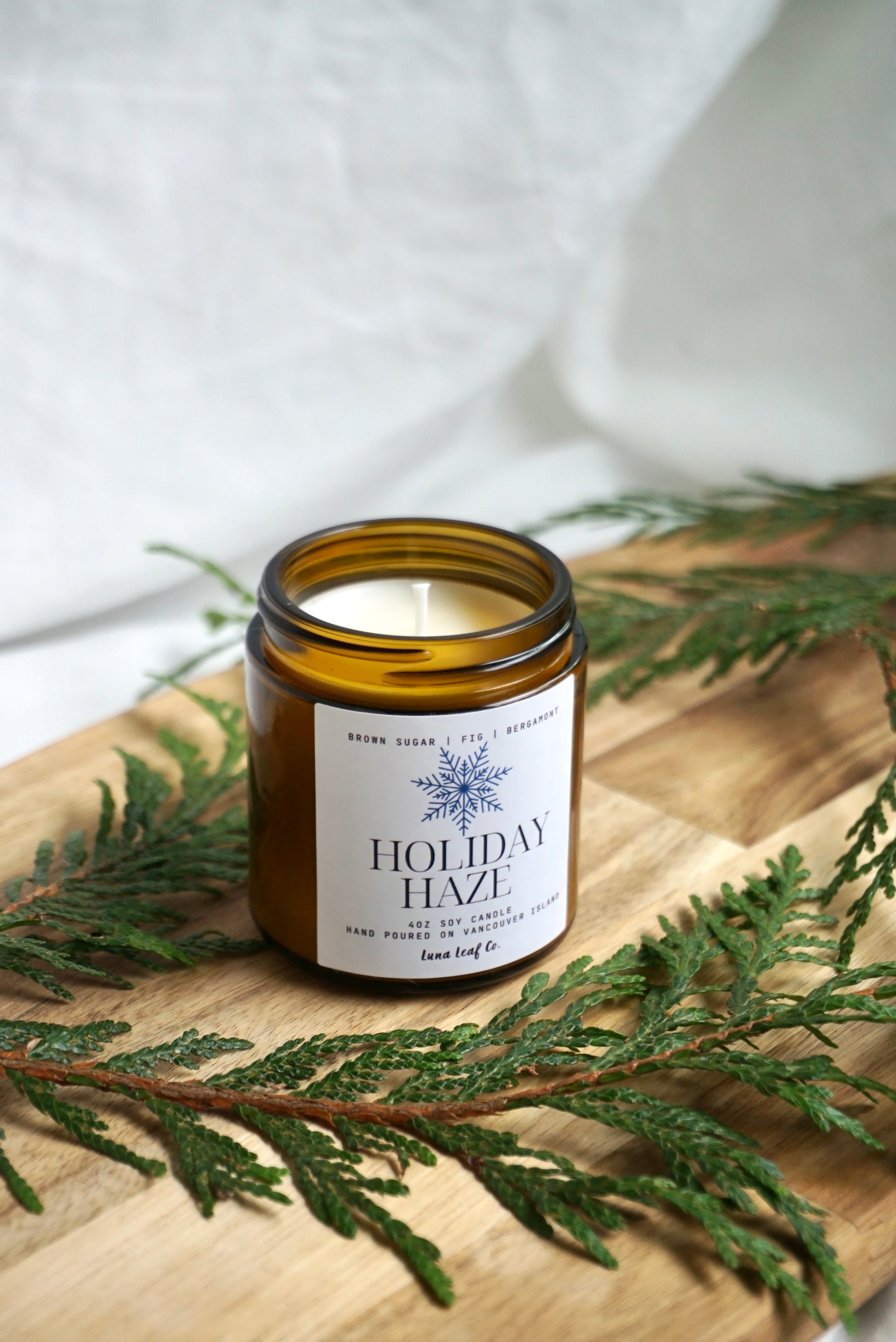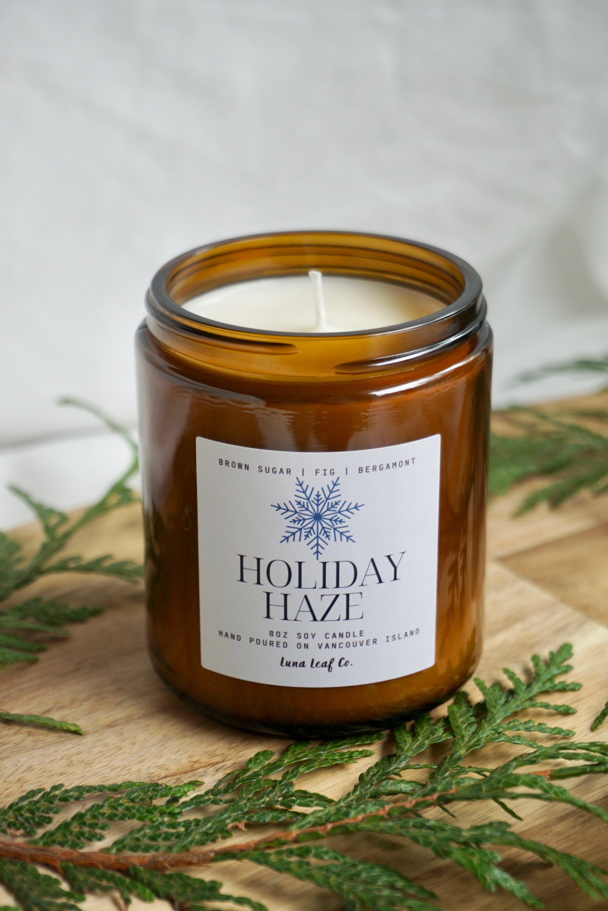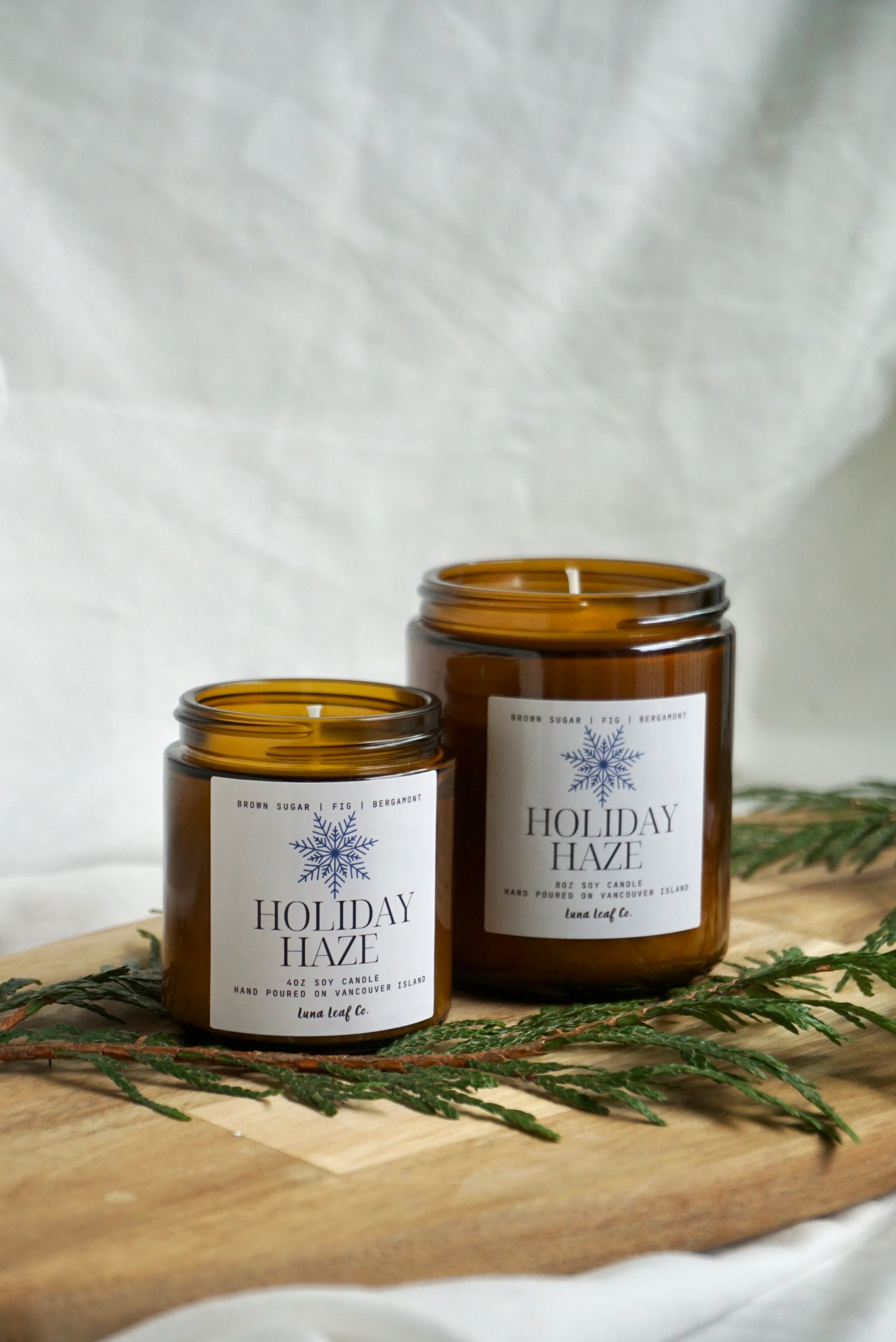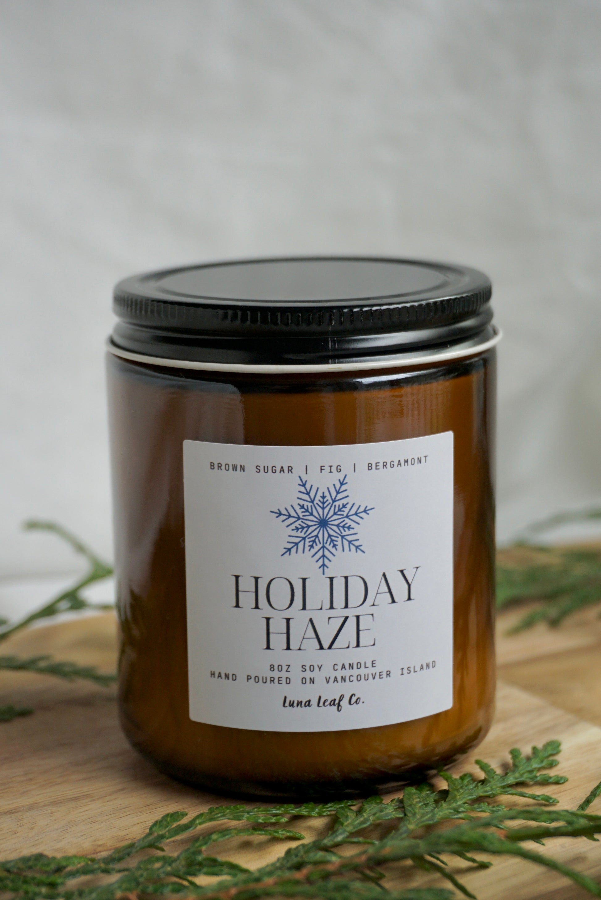 Indulge yourself in the Holiday Haze with an inviting blend of brown sugar and fig. A rich aroma of Brown Sugar and ripe Fig, perfectly complimented by the creamy sweetness of Madagascar Vanilla with subtle hints of Bergamot, and orange Blossom.